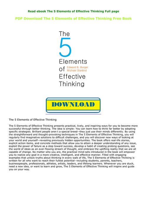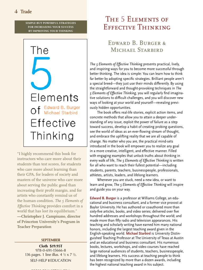The 5 Elements Of Effective Thinking By Edward Burger Michael